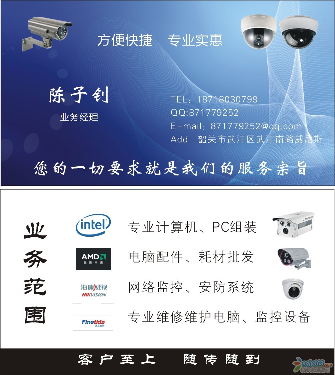 正文摘要:服務形式:上門維修 服務口號:客戶至上,隨傳隨到 服務項目: 上門電腦維修服務,上網故障,電腦慢,死機,更換系統(tǒng),路由器寬帶設置,無線WIFI安裝,電腦升級組裝,監(jiān)控報裝等等,只需一個電話幫您 ... |