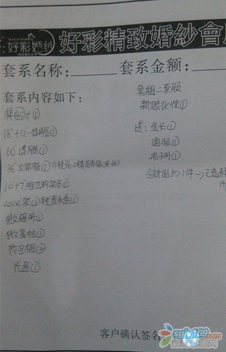 正文摘要:人于8月14號(hào)在好彩婚紗攝影約定了一套婚紗照原價(jià)5999元(惠州奧地利小鎮(zhèn)攝影基地3套衣服+仁化好彩專(zhuān)用奧斯卡攝影基地3套衣服)。 和店員協(xié)商后優(yōu)惠價(jià)為5299元,另外贈(zèng)送一套全新婚紗。   ... |