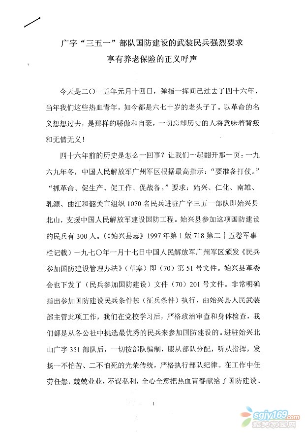 廣字"351"部隊(duì)國(guó)防建設(shè)的武裝民兵強(qiáng)烈要求享有養(yǎng)老保險(xiǎn)的呼聲