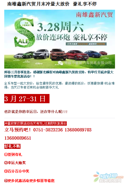 南雄鑫新汽貿(mào)月末沖量大放價(jià) 豪禮享不停