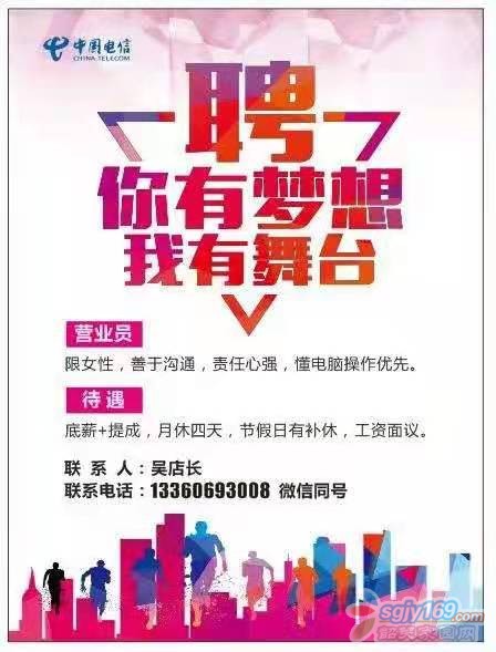 正文摘要:本帖最后由 武江區(qū)歐杰通訊 于 2021-3-23 11:10 編輯 招聘電信營業(yè)員,業(yè)務(wù)員各兩名,月休4天,工作地點(diǎn)沙洲尾鴻洲花園,有意者請撥打13360693008,微信號13640003885,謝謝 |